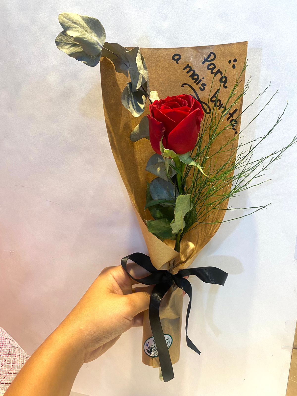 Botão no Kraft, uma linda rosa para presentear uma pessoa querida, e demonstrar todo seu carinho em uma data especial.