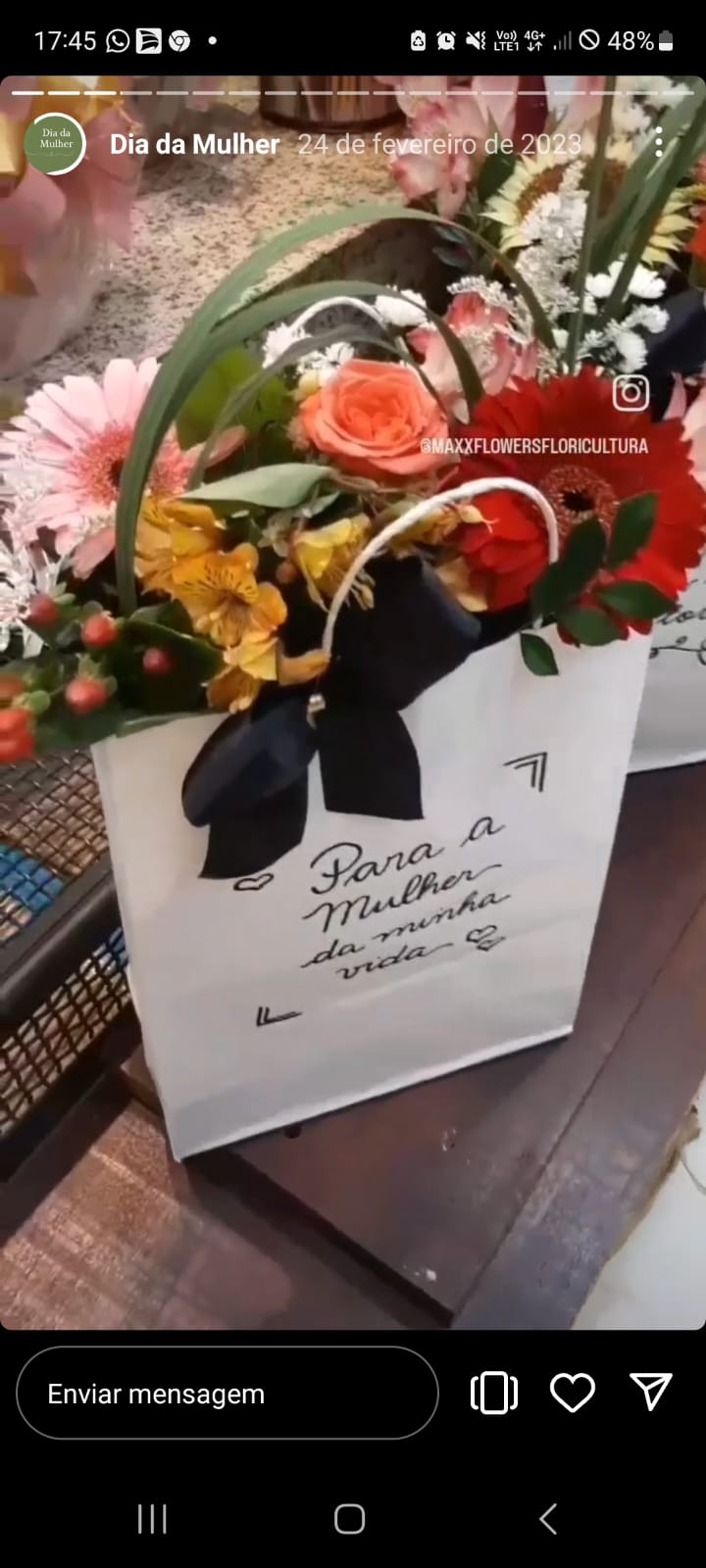 Lindo arranjo de flores do campo mistas, em sacola de papel kraft branco, personalizada.