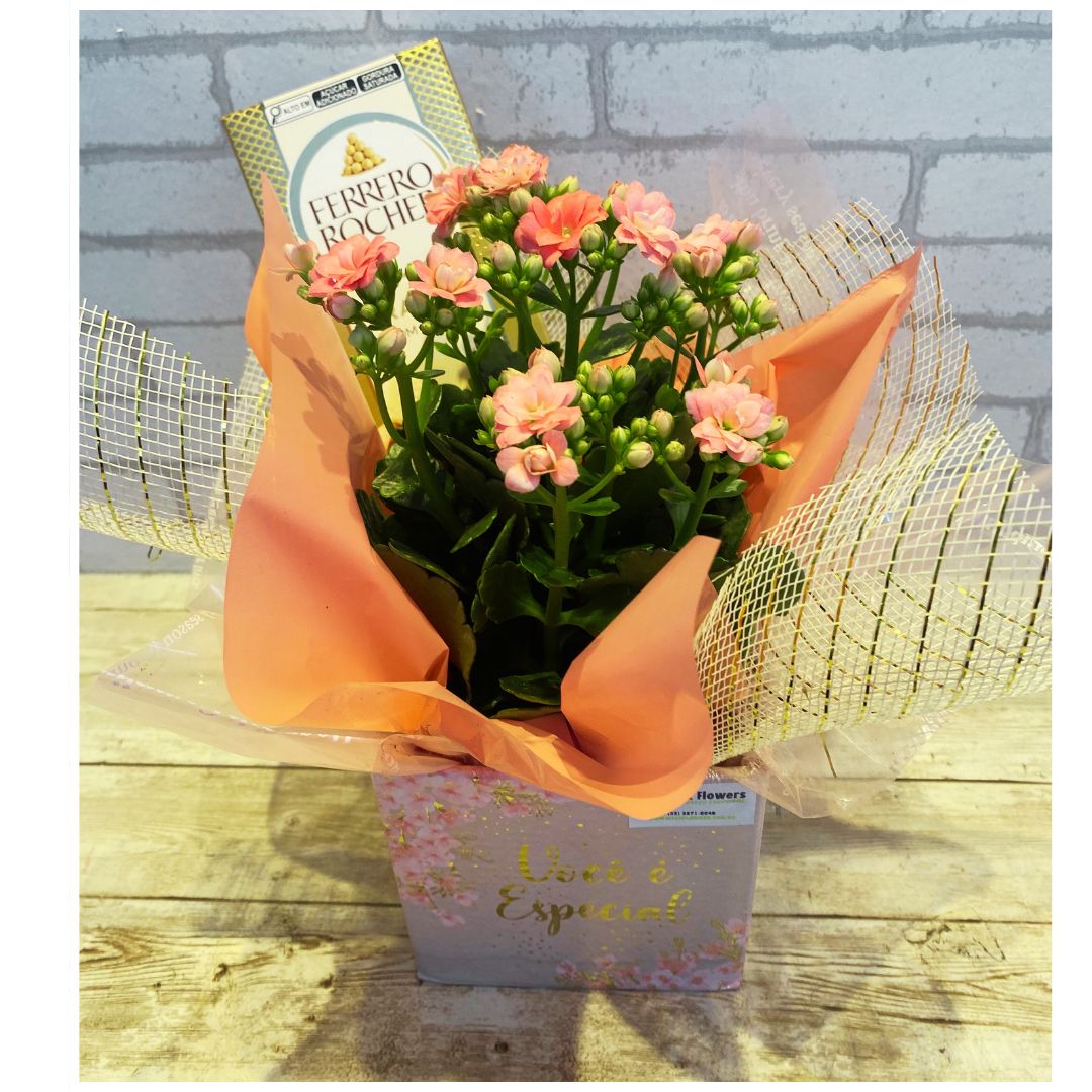 Um charmoso vaso de calandiva pequena, em embalagem especial de cachepô paper.