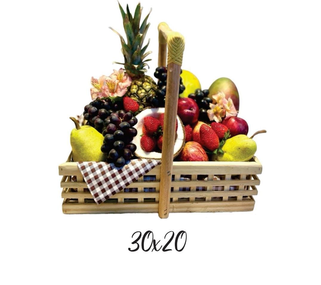 Descubra a linda cesta de frutas, perfeita para surpreender alguém especial. Com dimensões de 30×20 cm, esta cesta conta com uma seleção de produtos frescos e saborosos, garantindo assim, a qualidade e frescor de cada fruta.