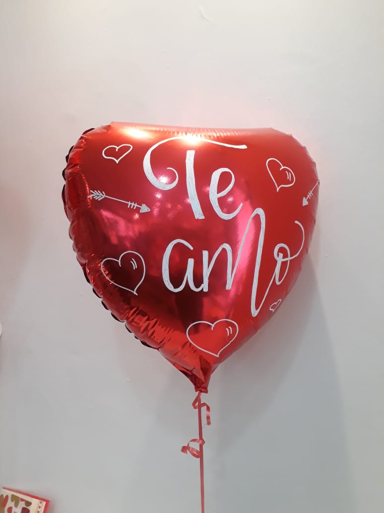 O amor está no ar. Balão em formato de coração, cheio com Gás Helio. Personalizado com “te amo”, “I love you”, “Feliz Aniversario”.