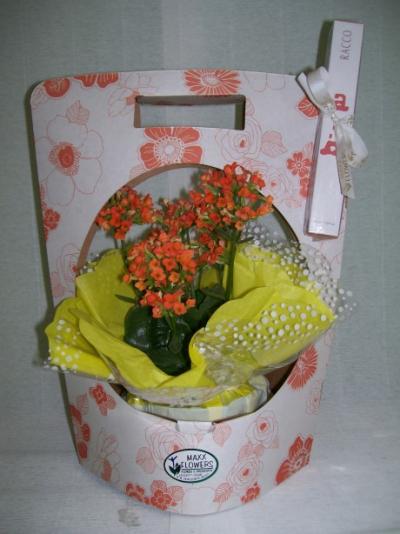 Kalanchoe laranja em caixa com alça, acompanhado de perfume